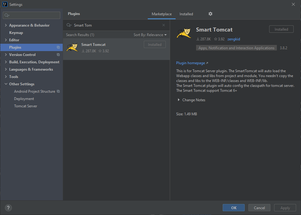 Then add a new Run Configuration and configure the Smart Tomcat plugin: