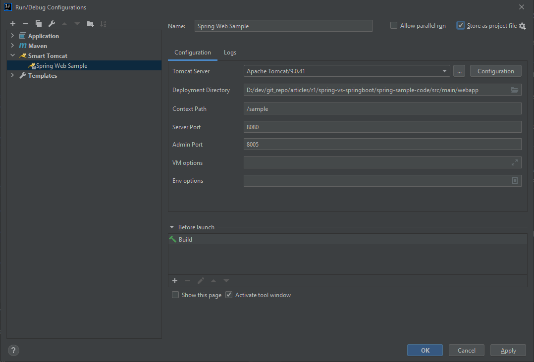 Without Spring Boot, we don’t have the option of embedding a Tomcat container. There are some Maven plugins and IDE plugins for this purpose. In this article, we will use one of them.